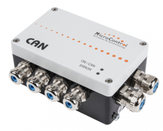 uCAN.4.ai-BOXのデジタル化されたアナログ値は、CANバス経由で送信されます。CANバスインターフェイスのビットレートは、50 kBit / s~1 MBit / sの範囲内で調整可能です。終端抵抗は、デバイスのスイッチを介してアクティブにできます。モジュールのCANopenプロトコルは、CANopen規格CiA 301、CiA 305およびCiA 404に準拠しています。11ビット識別子(CAN 2.0A)と29ビット識別子(CAN 2.0B)の両方をプロセスデータで使用できます。