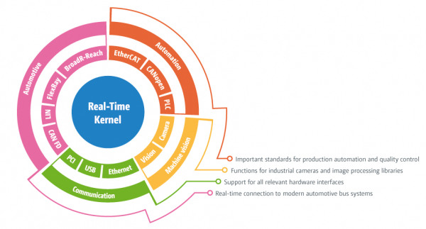 ほとんどすべての関数は、リアルタイムコンテキストとアプリケーションコンテキストの両方から使用できます。これにより、開発者は、アプリケーションレベルから直接ハードウェアにアクセスした「ハードリアルタイム」が必要かをケースバイケースで決定できます。