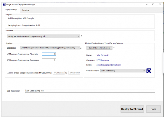 PEmicroは、リモート生産を管理するためのクラウドベースの生産プログラミングプラットフォームであるPEcloudを立ち上げました。PEcloud と共に、イメージ作成ユーティリティの更新バージョンがリリースされ、PEcloud に接続されたプログラミングイメージ (ジョブ) を生成する機能が追加されました。