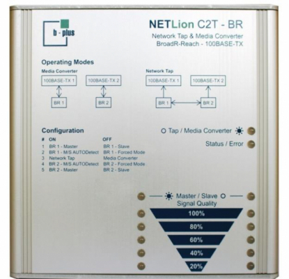 NETLion は BroadR の開発ツールですBroadR-Reach ネットワークは、ユーザーによるデータ トラフィックのログ記録と分析をサポートしたり、BroadR Reach(R) 物理現象を 100BASE-TX イーサネットに変換したりできます。◆動作モード デュアル メディア コンバーター