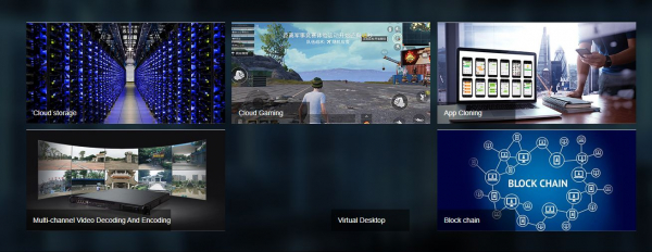 CSR1-N10R3588Sは、クラウドストレージ、クラウドゲーミング、マルチチャネルビデオエンコーディング・デコーディング、アプリクローン、ブロックチェーン、仮想デスクトップなど、多様な業務シーンでの活用が期待されています。