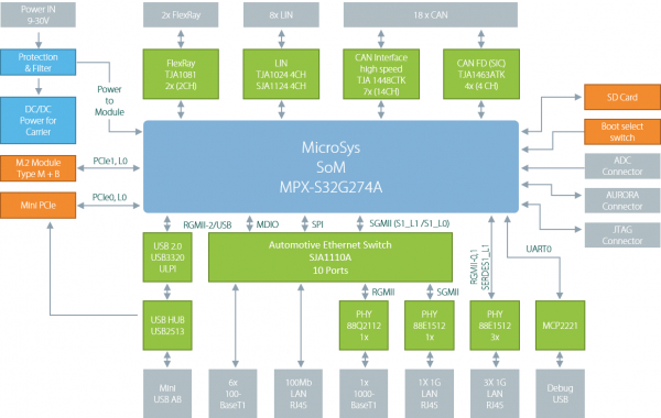・ 10BASE-T1L 経由の TSN サポート (リアルタイム操作のために同期されたタイムスタンプ付きのメッセージの転送を可能にするシンプルなツイストペア イーサネット接続) により、車両における IP ベースのクラウド ネイティブ通信の将来にも対応可能