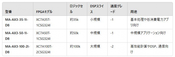 ・ XilinxのArtix-7 FPGAを搭載し、35k~100kロジックセル、40k~120kフリップフロップ、最大240DSPスライスを提供
