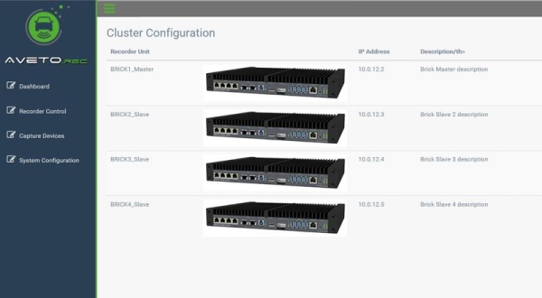 同期サービスの助けを借りて、様々なシステムのハードウェアタイムスタンプに基づいて一律のタイムベースが設定されます。異なるBRICKに接続されたすべてのセンサーは、現在、時間的相関関係にあります。特別な特徴は、関連する記録ソフトウェアもこの時間同期プロセスを使用することである。生成された録音パッケージは、すべて調整されました。このクラスタシステムの動作は非常に簡単に保たれます。レコーダーシステムはマスターとして機能し、メインユーザーインターフェイスも形成されます。このBRICKで録音を開始すると、接続されている他のすべてのレコーダーシステムで録音が同時に開始されます。したがって、ボタンを押すだけで、すべてのシステムの自動録音が同時に行われます。