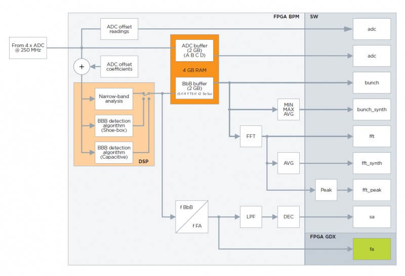 ・ 外部トリガー: データの処理とストレージは外部トリガーイベントによって開始され、高度なリアルタイム信号処理アルゴリズムにより、バンチの検出、横方向の位置、電荷、到着時間の測定