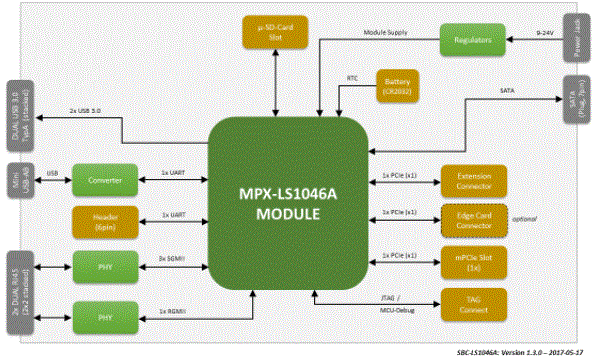 NXP QorIQ ™ LS1046AクアッドコアARM Cortex A72ベースの完全システムソリューションです。NXPのLS1046A(64ビット)の高性能CPUは、包括的なパケット処理アクセラレーションと、10Gbイーサネット、PCIe Gen3、SATA 3.0、およびUSB 3.0を含む高速周辺機器を提供し、幅広い業界4.0アプリケーションに対応します。