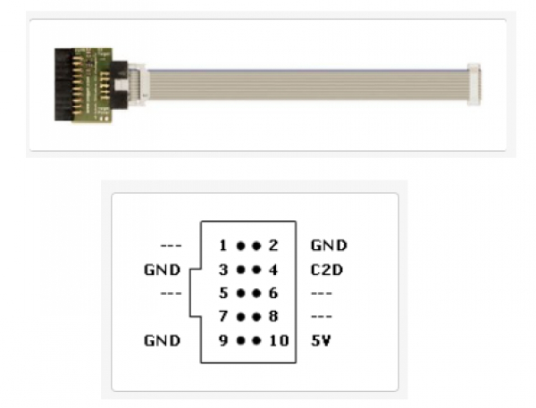 J-Link SiLabs C2アダプタは、20ピン、0.1インチピッチの標準Jリンクコネクタを10ピン、0.1インチピッチのSiLabs C2コネクタに変換します。10ピンのリボンケーブルが含まれています。