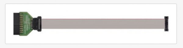 J-Linkザイリンクスアダプタは、20ピン、0.1インチピッチの標準J-Linkコネクタを14ピン、2mmピッチコネクタに変換します。14ピンのリボンケーブルが付属しています。