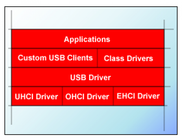 コアクラスのUSBプロトコルスタックには、ハブクラスドライバが統合されています。クラスドライバを使用すると、アプリケーションは、転送タイプや使用速度など、詳細を気にすることなくデバイスを使用できます。