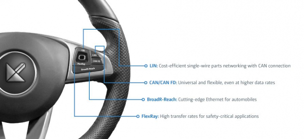 ・ 多様な自動車プロトコル対応: FlexRay、CAN/CAN FD、LINなどの主要な自動車データ通信プロトコルに対応し、リアルタイムでのデータ通信を可能にします。