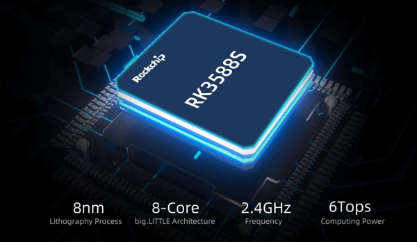 Rockchip の最新ハイエンドプロセッサ RK3588S は、8nm プロセスを採用し、最大 2.4GHz で動作。ARM Mali-G610 MP4 クアッドコア GPU を統合し、6Tops の AI 計算能力を持つ NPU を搭載。主要なディープラーニングフレームワークをサポートし、幅広い AI アプリケーションシナリオに対応します。
