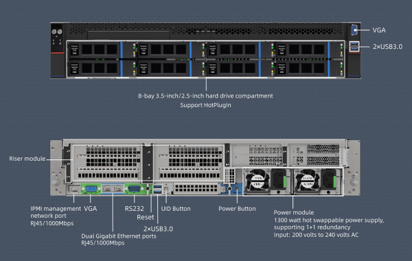 ・ 電源:1300Wホットスワップ電源 × 2基(1+1冗長構成、入力200V~240V AC)