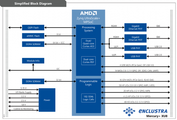 Mercury+ XU8 FPGAモジュールは、AMD ZynqTM UltraScale+TM MPSoCシリーズを中心に据え、下記の要素を一体化した高集積モジュールです:・ プロセッシングシステム(PS):