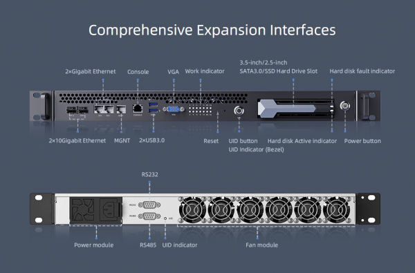 ・ ネットワーク & 管理:2×10GbE(SFP+)+2×1GbE(RJ45)、BMC管理用1×1GbEを搭載。Redfish/VNC/NTP対応のWeb BMCによる遠隔監視・制御・仮想メディア操作が可能