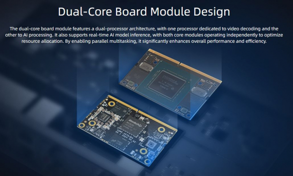 ◆製品ハイライト・ デュアル・ボードモジュール設計:ビデオ処理系とAI推論系を物理的に分離し、リソース干渉を低減。並列実行でスループットを最大化