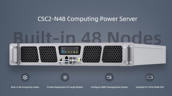 ■製品ハイライト・ 48分散ノード+1制御ノードを2U筐体に集約。ノードはRockchip RK3588S/SOPHGO BM1684X/NVIDIA Jetson Orin Nano・Orin NXから選択可能。制御ノードはRK3588を搭載