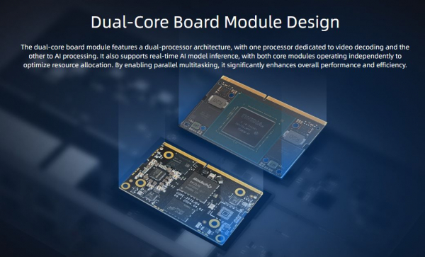 ■製品ハイライト・ デュアルボード設計:デコード専用とAI処理専用の2プロセッサで並列多重処理。負荷分散により全体効率を向上。