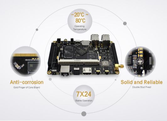 Rockchip PX3-SEクアッドコアプロセッサを搭載した、最大1.3GHzの周波数、工業用グレードの安定性、動作温度-20℃〜80℃に対応してます。