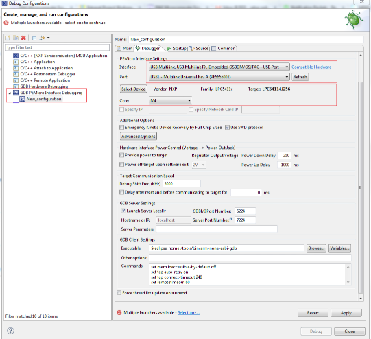 PEmicroのプラグインを使用すると、異なるPEmicroハードウェアインターフェイスに接続されている限り、複数のARMデバイスを同時にデバッグできます。